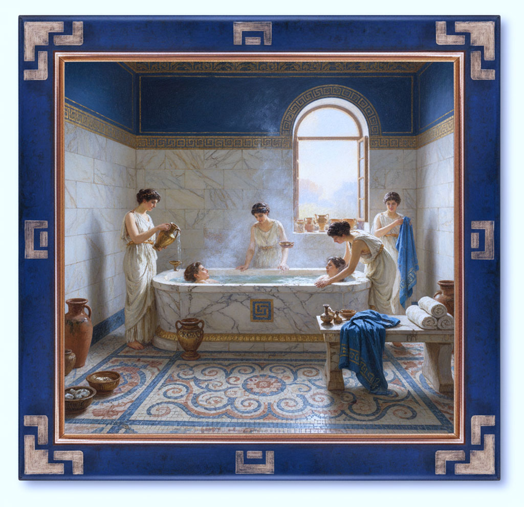 Grecque or sur assiette bleue