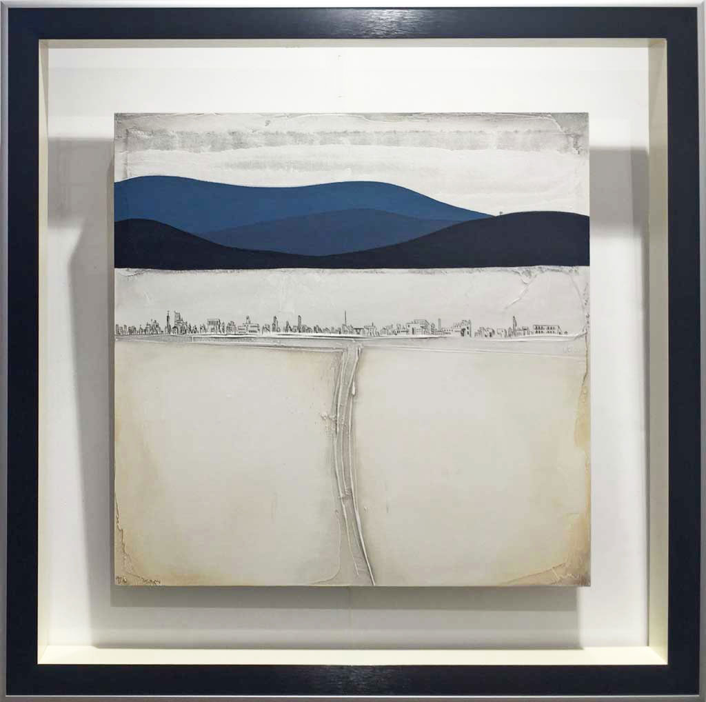 Plat noir brossé extérieur argent mat réhausse bleu pierre cache-clous argent mat (Michel Sombart)