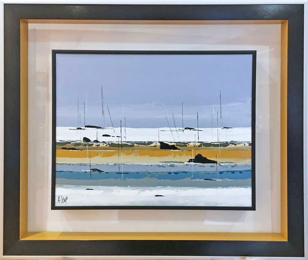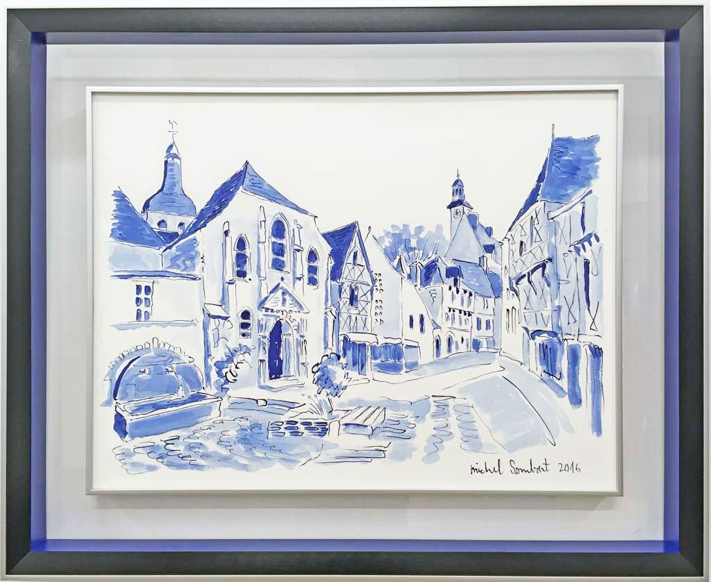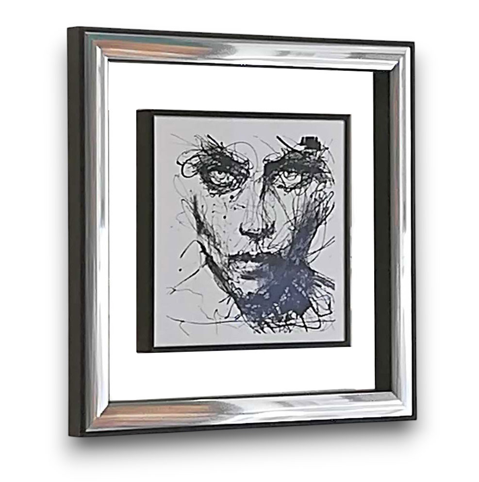 Plat noir brossé extérieur argent mat réhausse bleu pierre cache-clous argent mat (Michel Sombart)