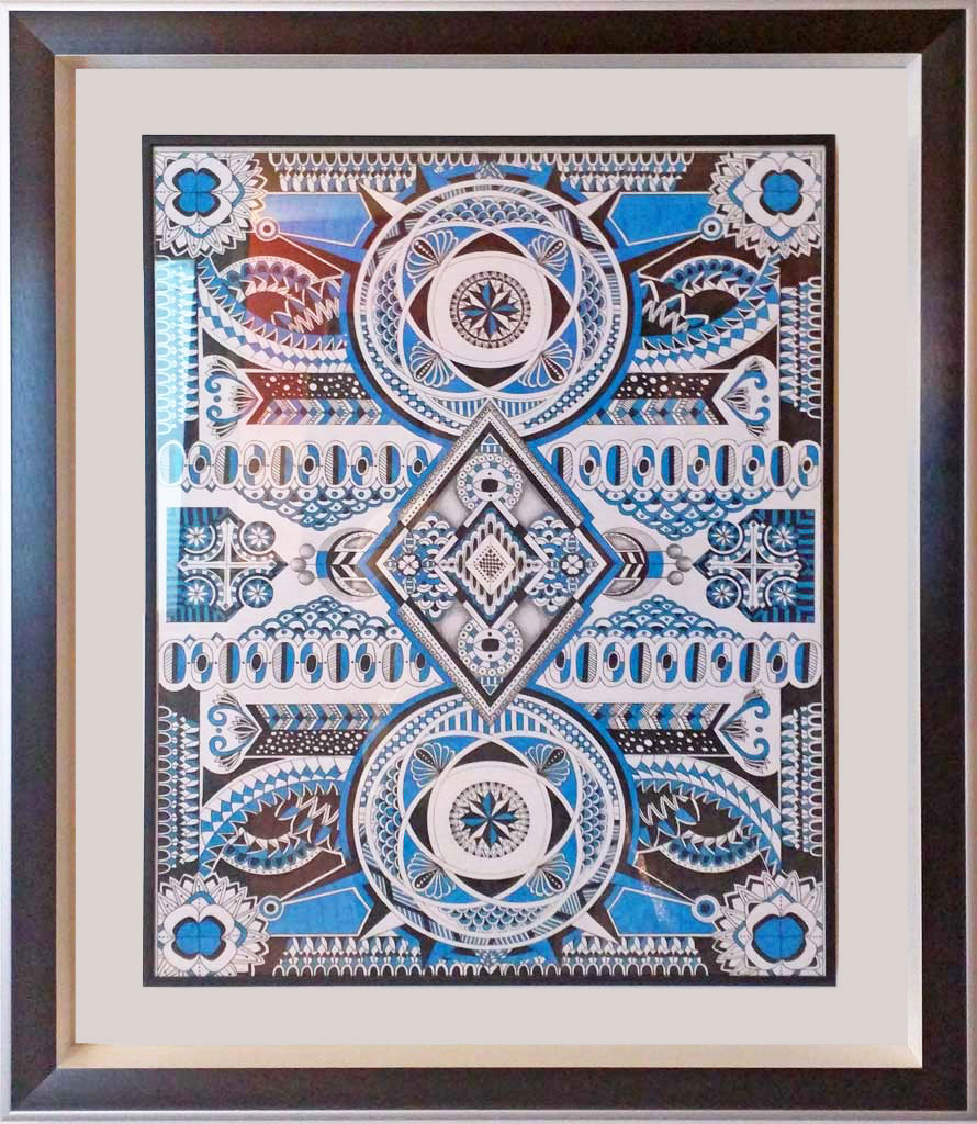Plat noir mat extérieur argent vif rehausse vieux bleu plexi transparent cache-clous argent mat (estampe japonaise)