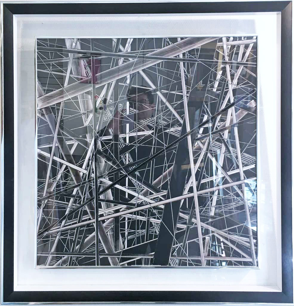 Plat argent vif exterieur noir mat rehausse jaune vif cache-clous argent vif plexi transparent (Cambier)