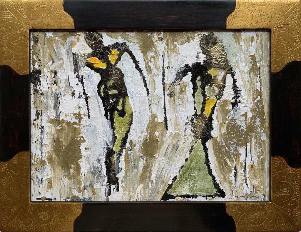 Angles gravés or fin vieux blanc (Basquiat)