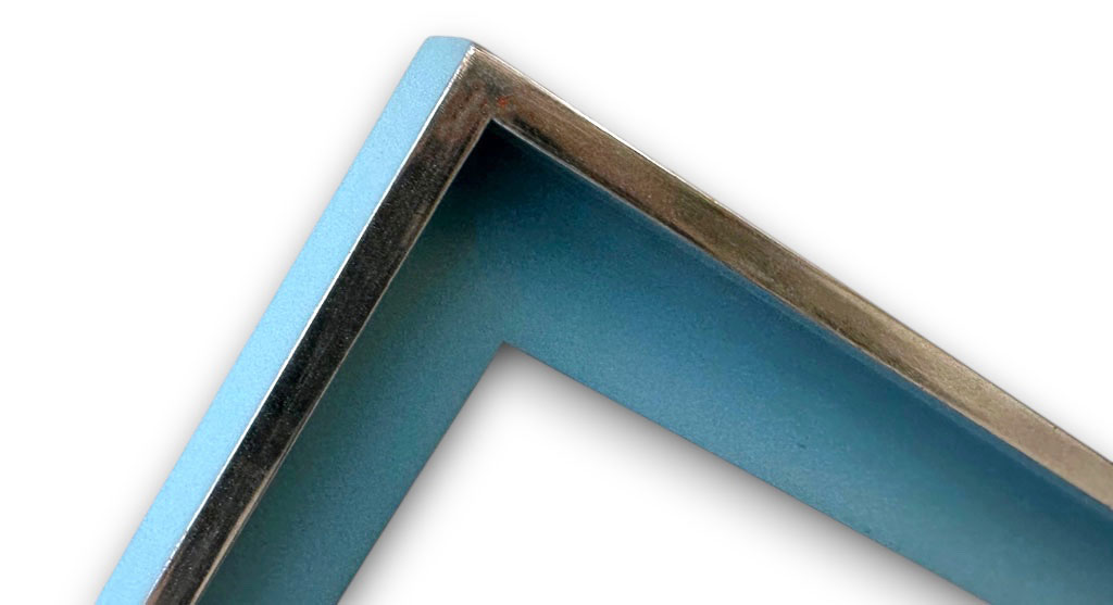 Chêne à tenons vieux bleu filet or blanc