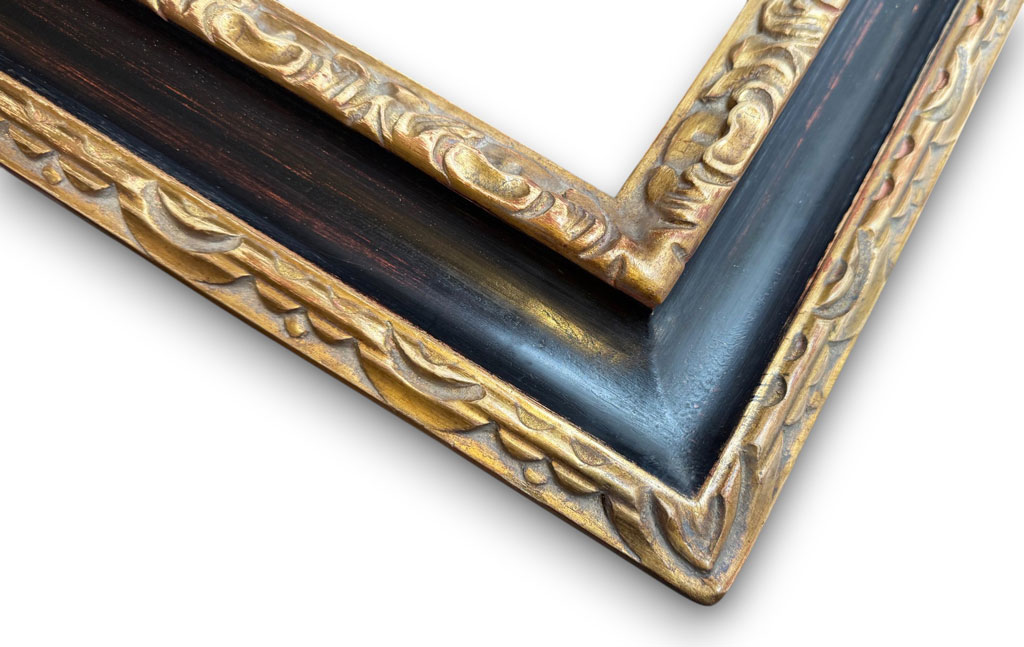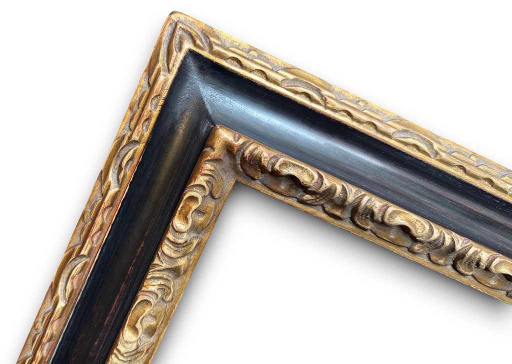 Sculpté coquille or usé creux noir usé