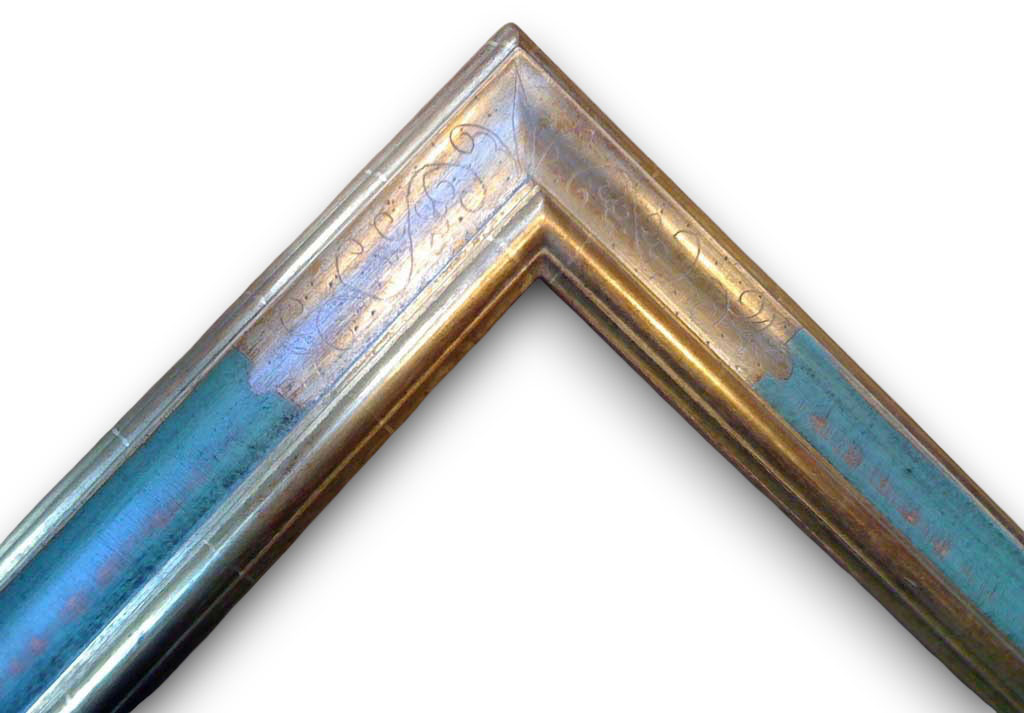 Heba vieux bleu brossé boudin or traces de feuilles